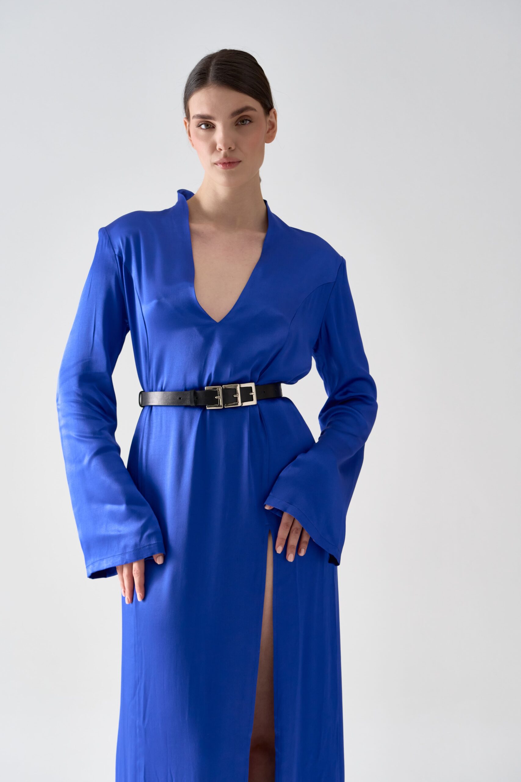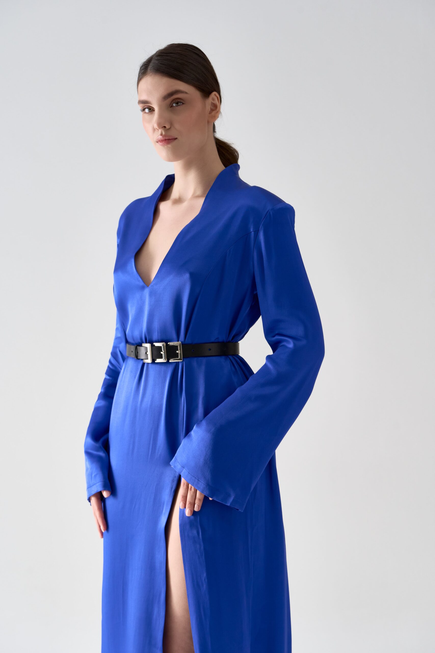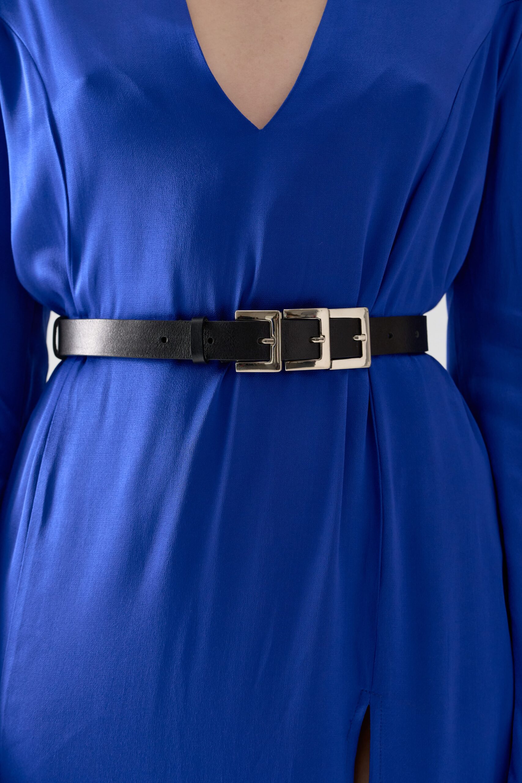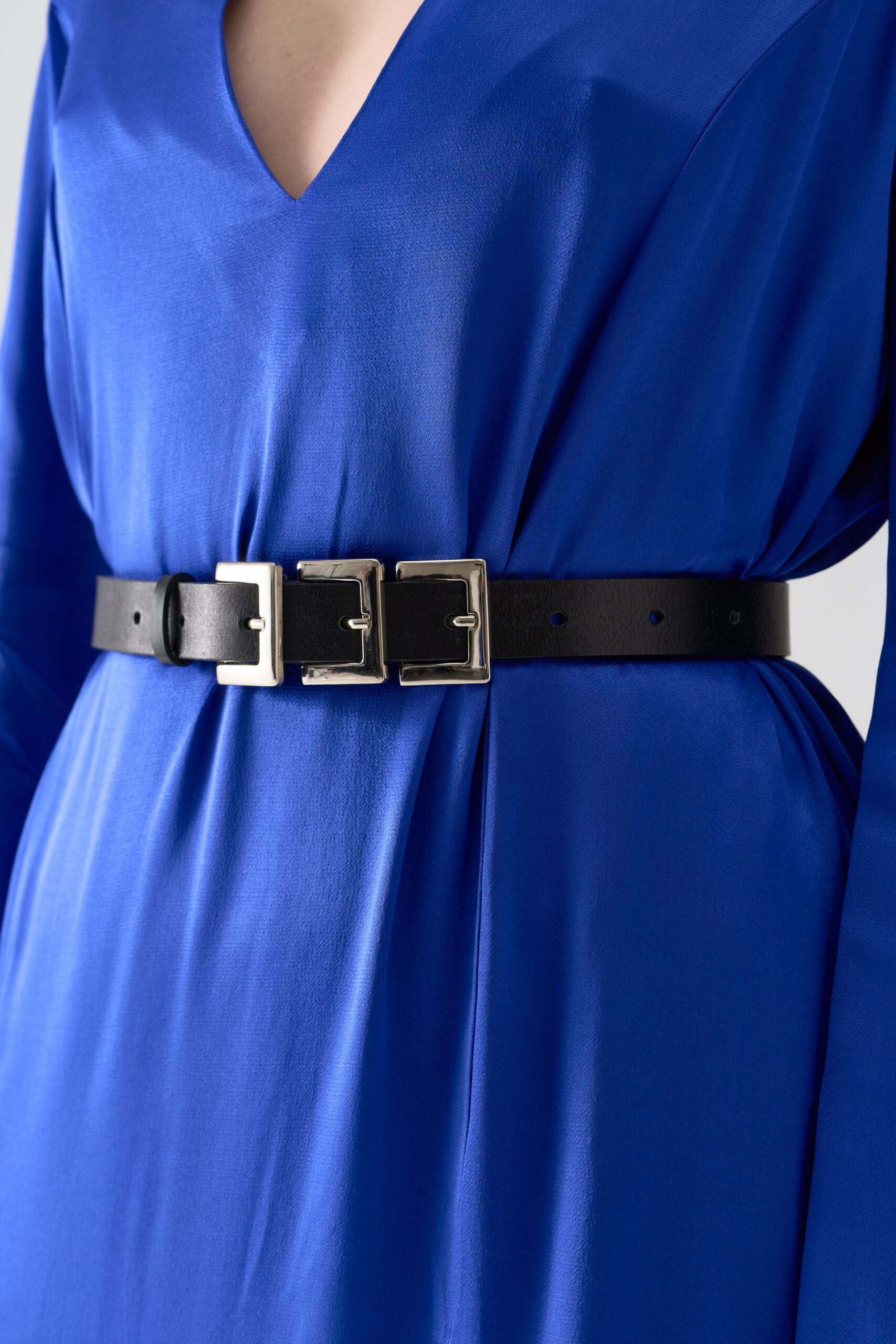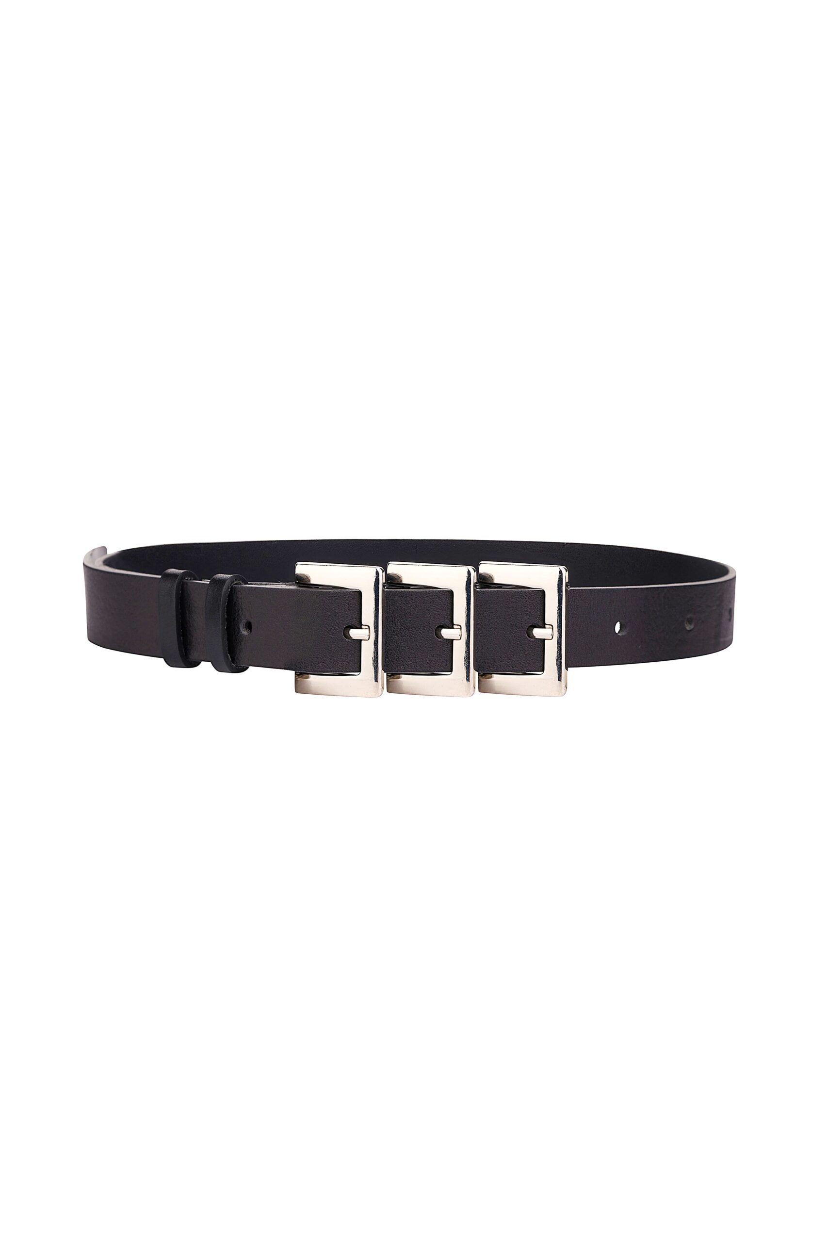 Декорований трьома металевими пряжками, що створюють виразний акцент у образі.