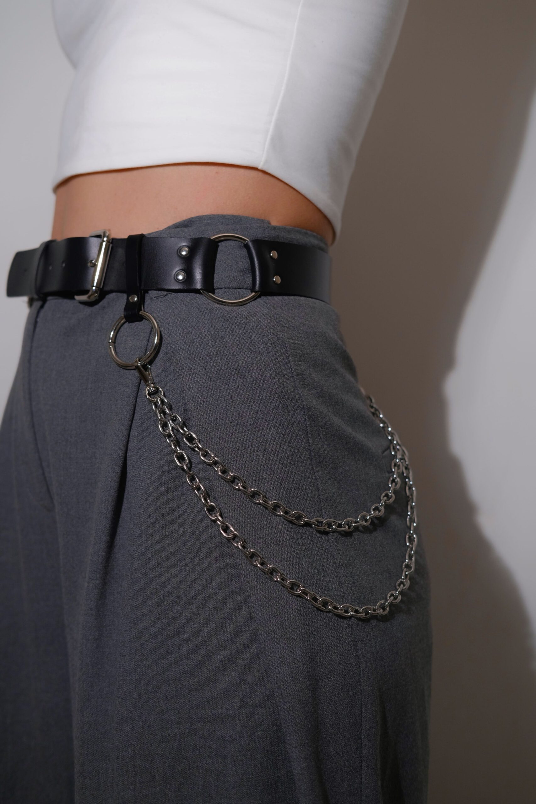 Комбінуйте аксесуар з шкіряними штанами або джинсами. Додайте до бразу массивні черевики на шнурівці або шкіряну куртку.Ланцюжок додасть образу додатковий акцент, підкресливши ваш бунтарський дух.